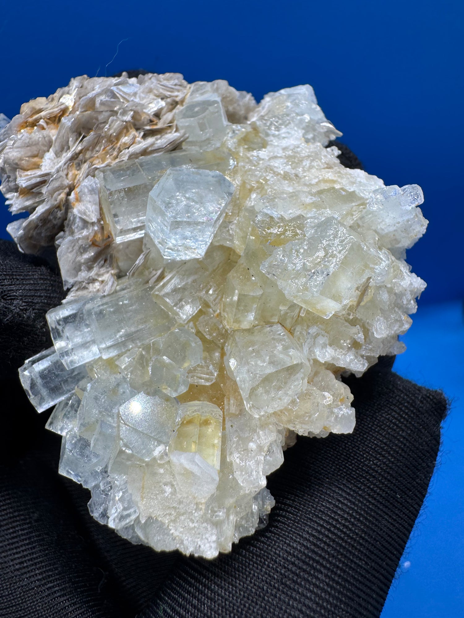- Natural Mica Matrix: The aquamarine is beautifully set against a matrix of mica, adding a contrasting sparkle to the specimen.