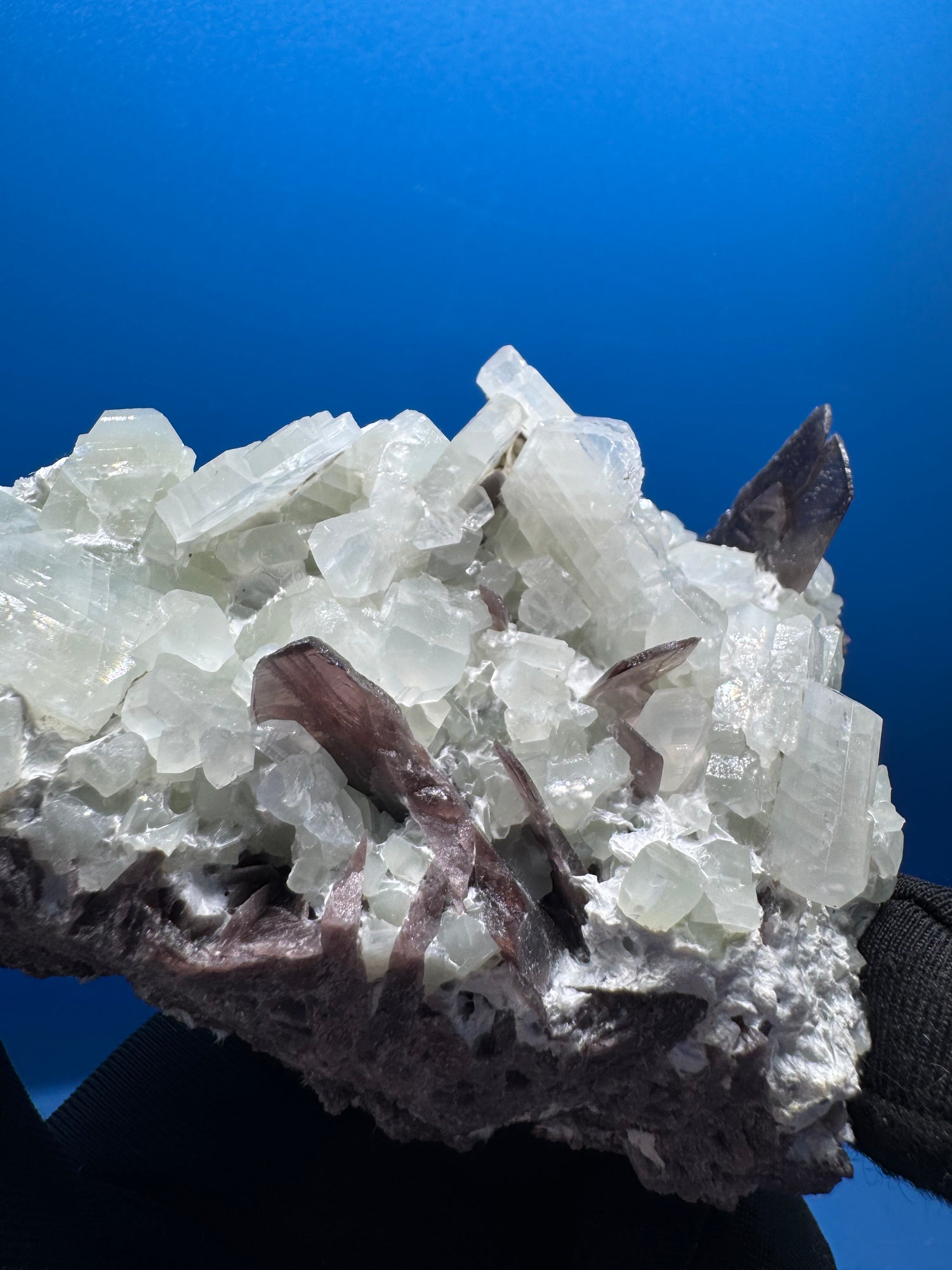 • Rare Axinite Crystals: Sharp, lustrous blades with rich brown to violet tones.