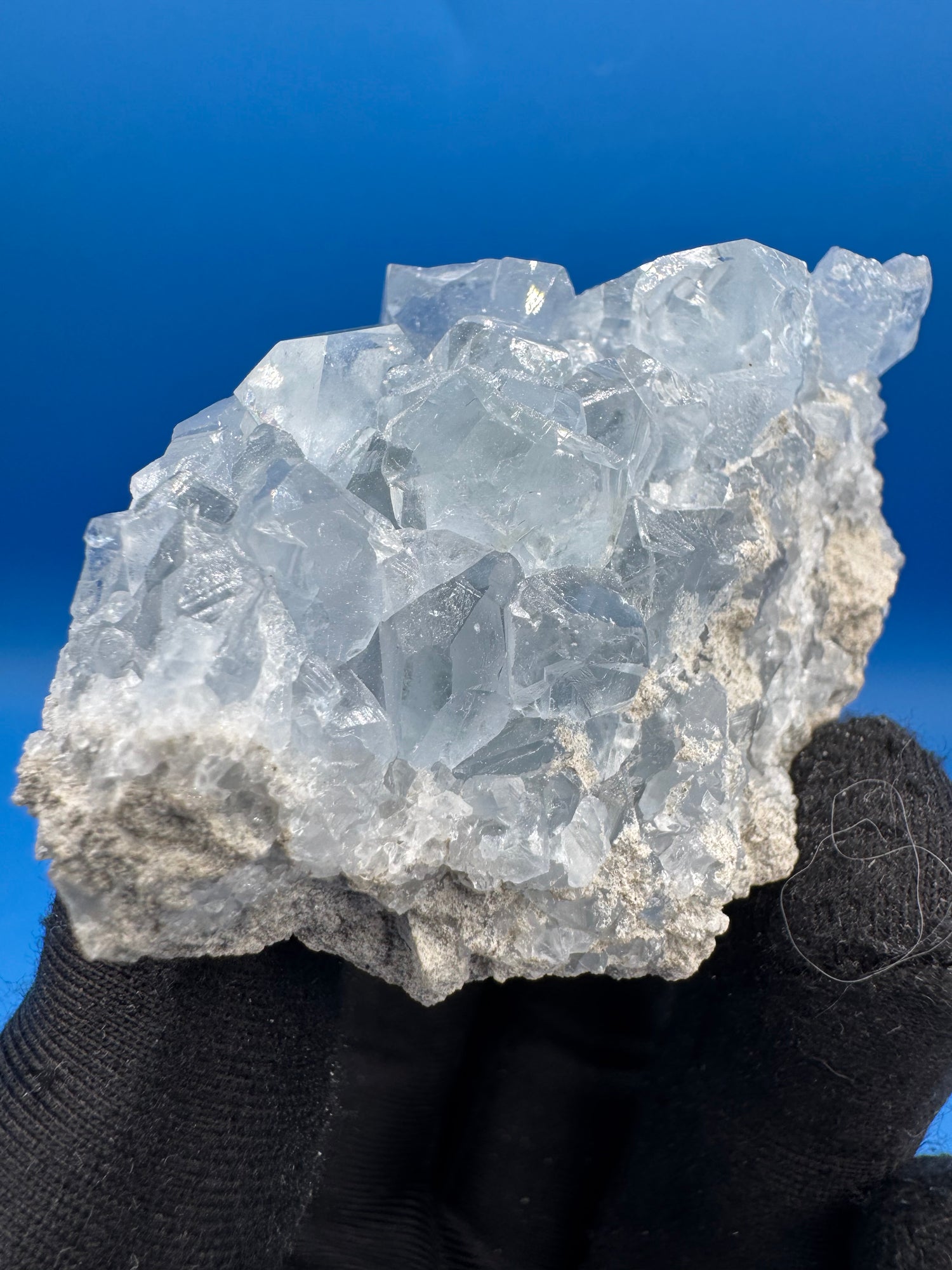 • Intense blue to sky-blue Celestine crystals with excellent saturation