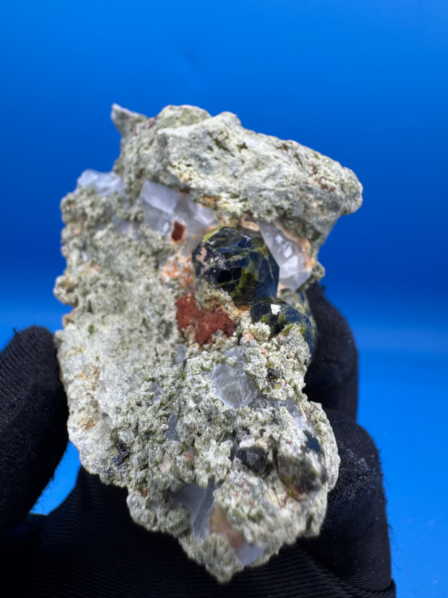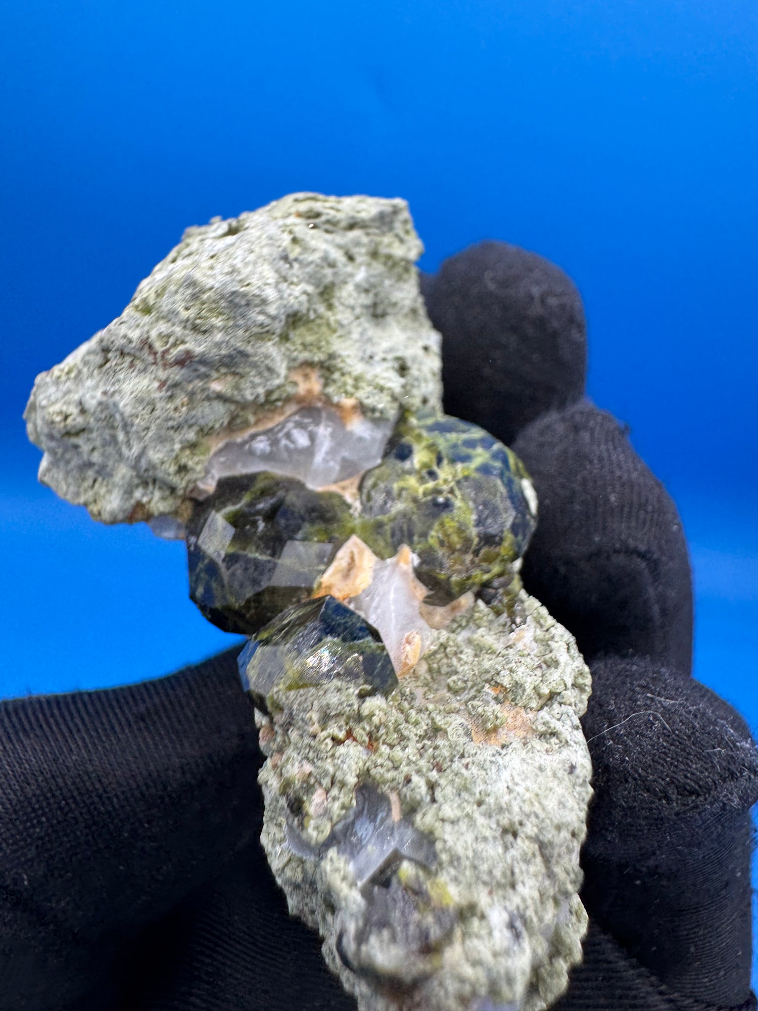 This rare deep-green Demantoid Garnet specimen from the Belqeys Mountains of Iran features well-formed Andradite crystals with exceptional color and natural brilliance. Known for their rich emerald-green hues and adamantine luster, Iranian Demantoids are highly prized and rival the finest examples from classic localities worldwide.