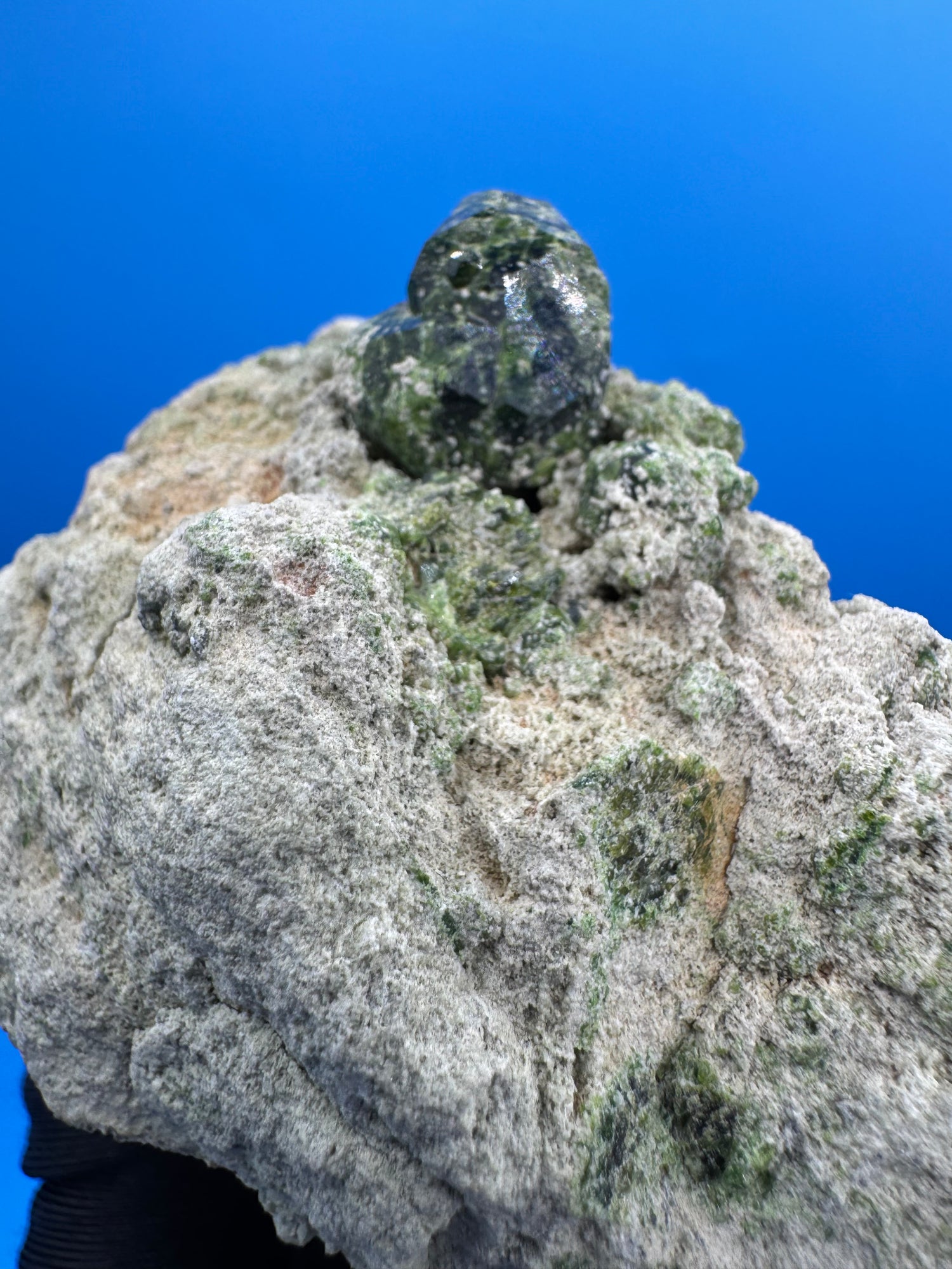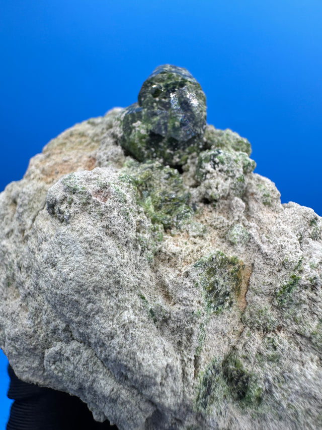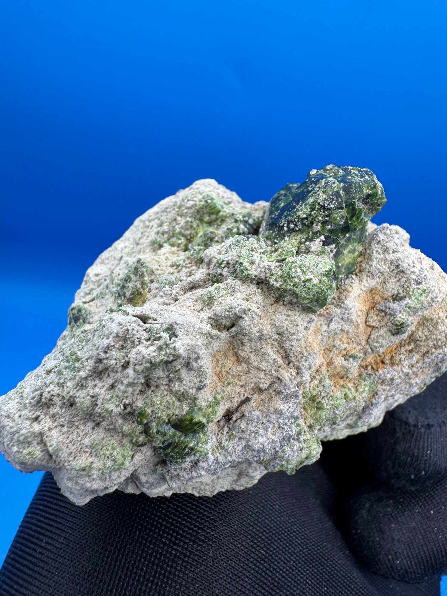 This rare deep-green Demantoid Garnet specimen from the Belqeys Mountains of Iran features well-formed Andradite crystals with exceptional color and natural brilliance. Known for their rich emerald-green hues and adamantine luster, Iranian Demantoids are highly prized and rival the finest examples from classic localities worldwide.