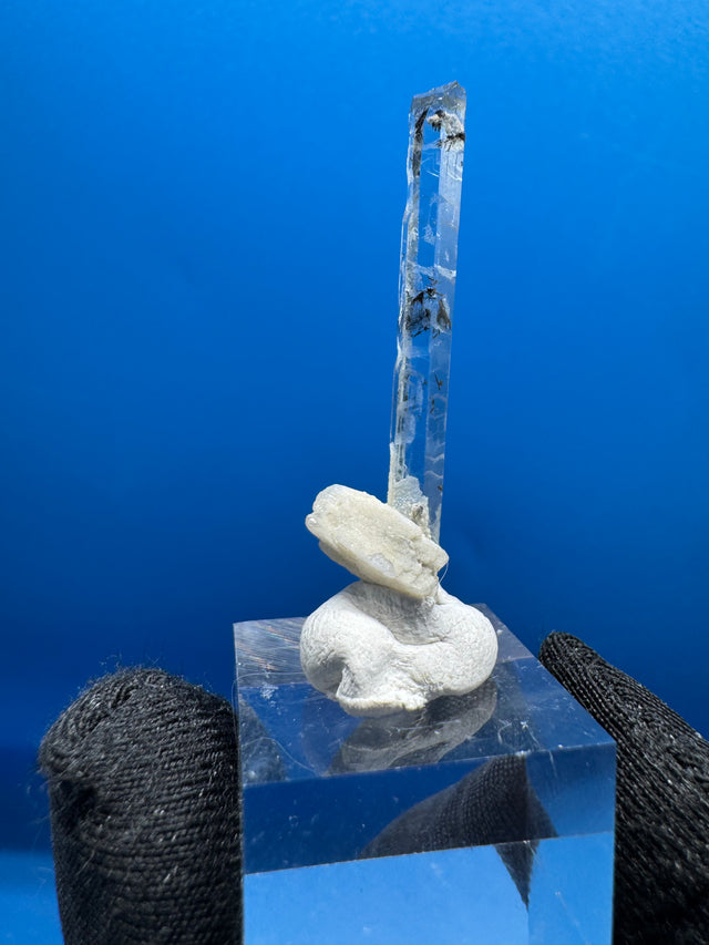 Discover the natural beauty of this Aquamarine crystal from Skardu, Pakistan, elegantly perched on its Albite host rock. Featuring vivid blue color, excellent clarity, and a well-formed termination, this specimen combines the brilliance of Aquamarine with the subtle contrast of Albite for a truly striking display piece.