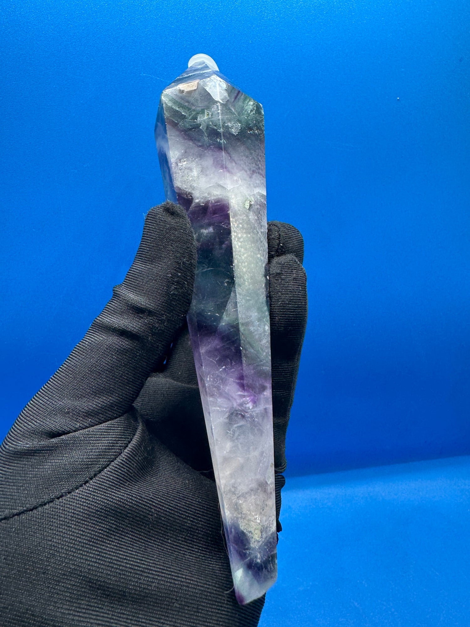 Gorgeous Fluorite Freeform Polished Tower / Wand with Metal Holder