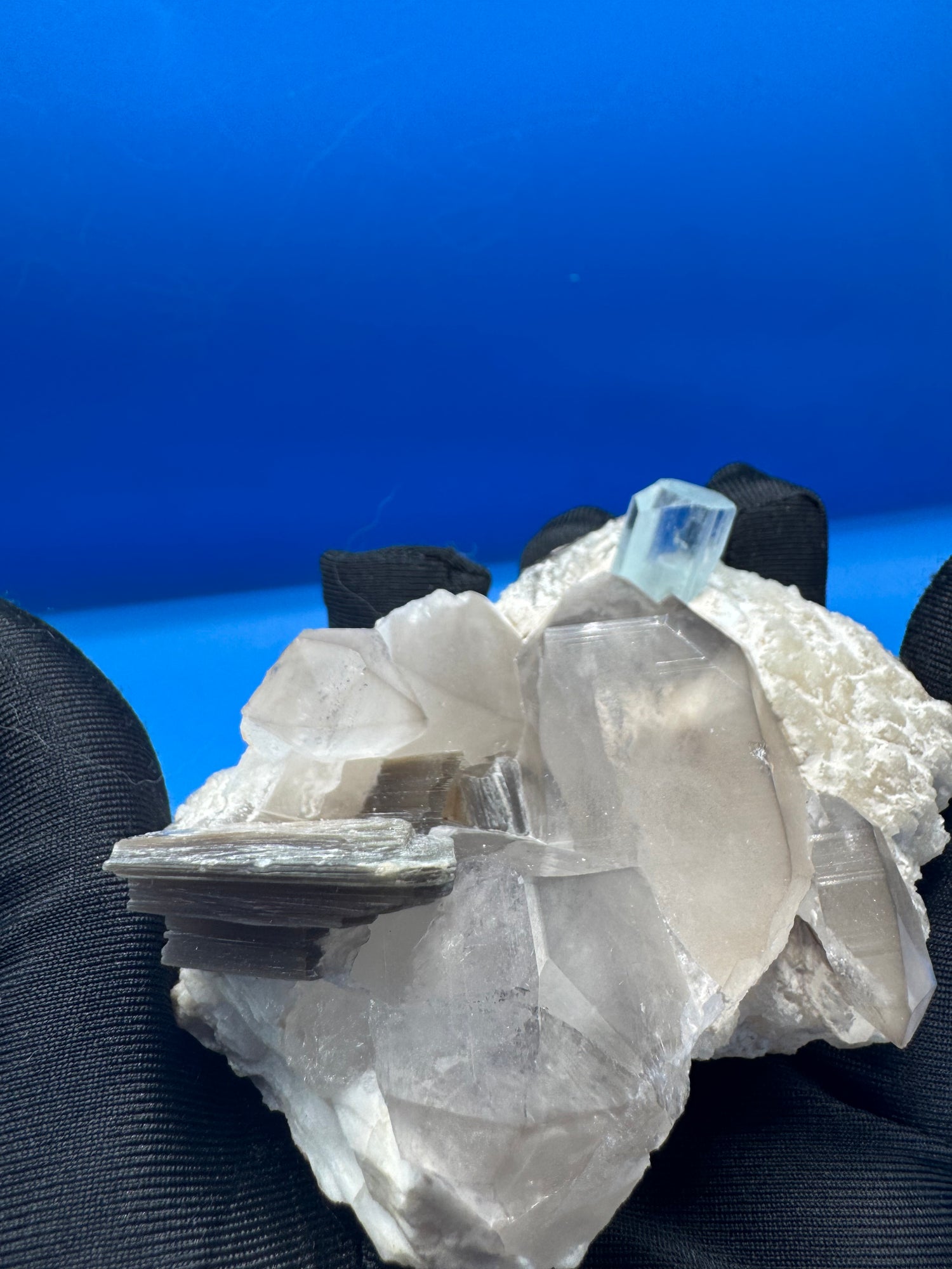 Minerals: Aquamarine, Smoky Quartz, and Mica on matrix